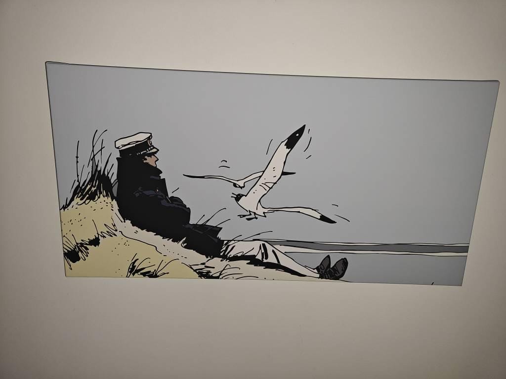 Our art print reproduces the character Corto Maltese, Giclée print on natural cotton canvas can be made either as a poster or painting with a natural wooden gallery frame in standard, large and extra large sizes 50x100, or 70 x 150 cm.