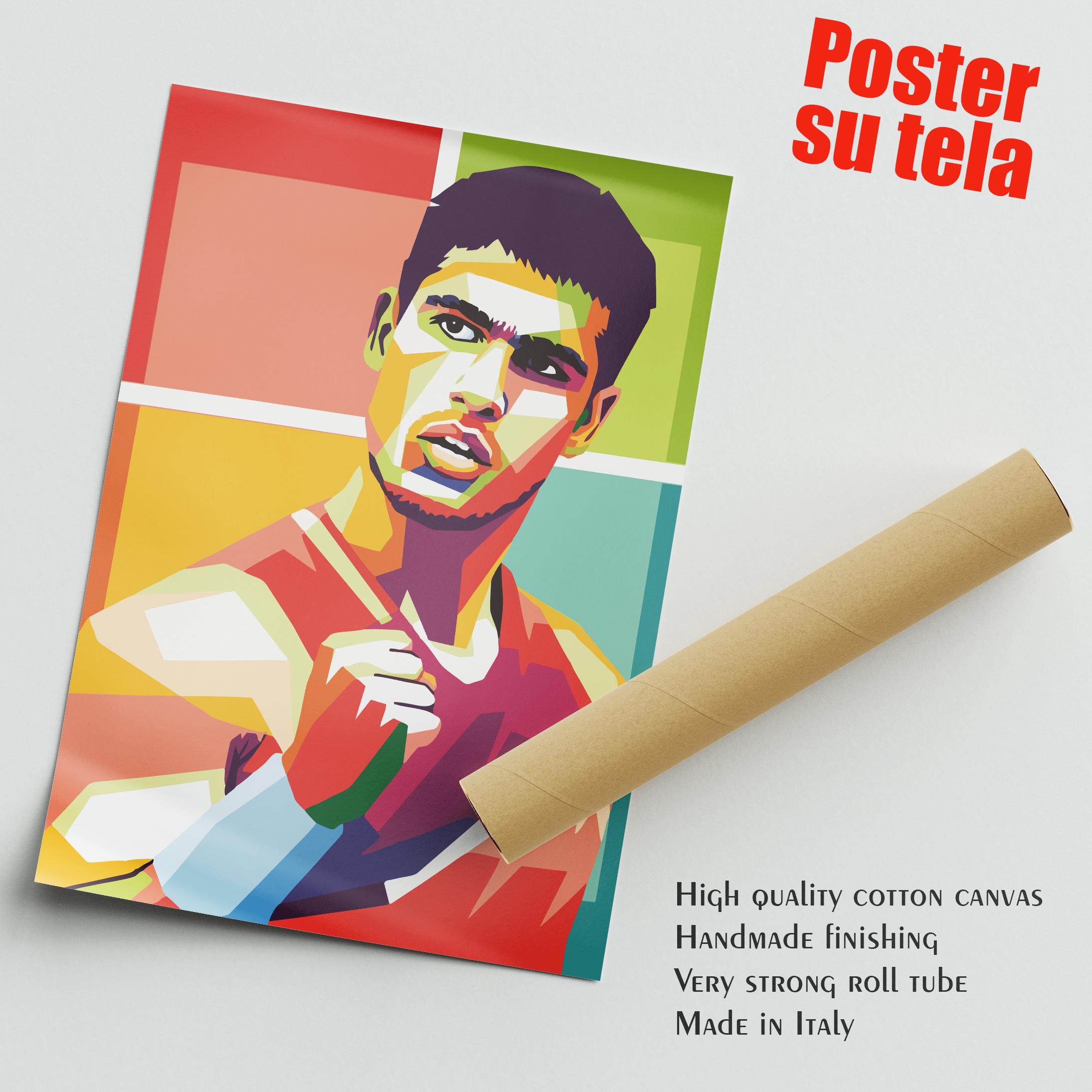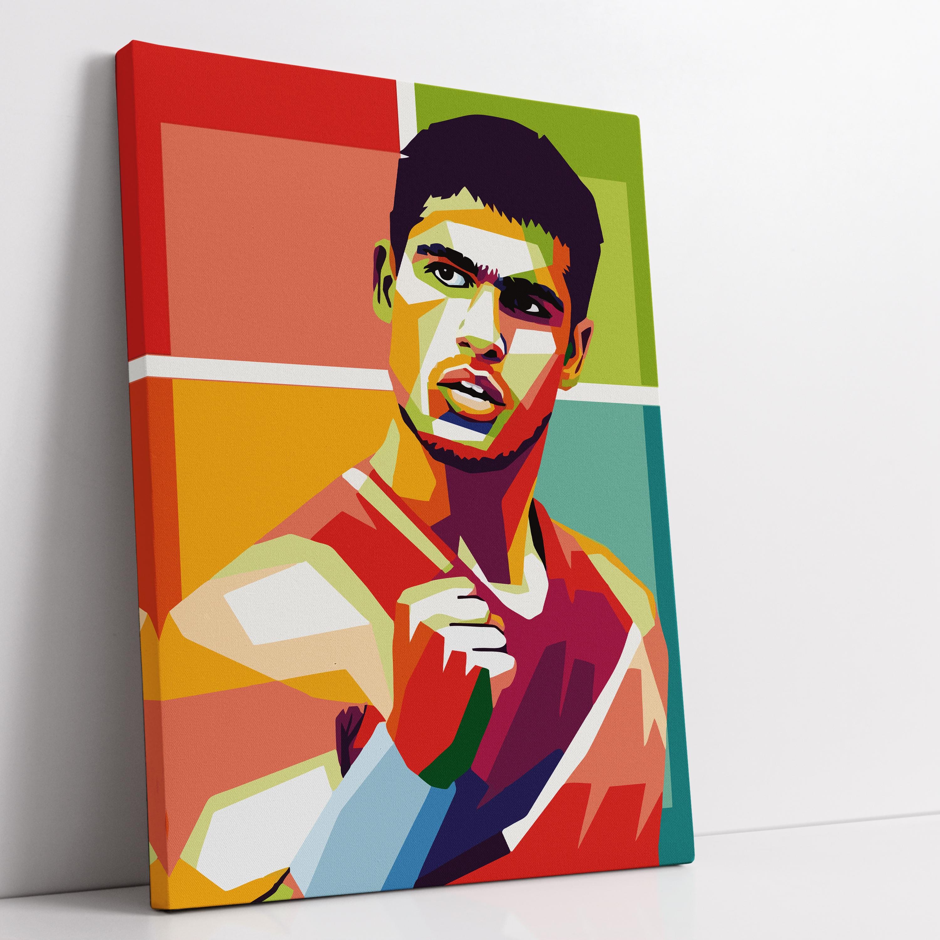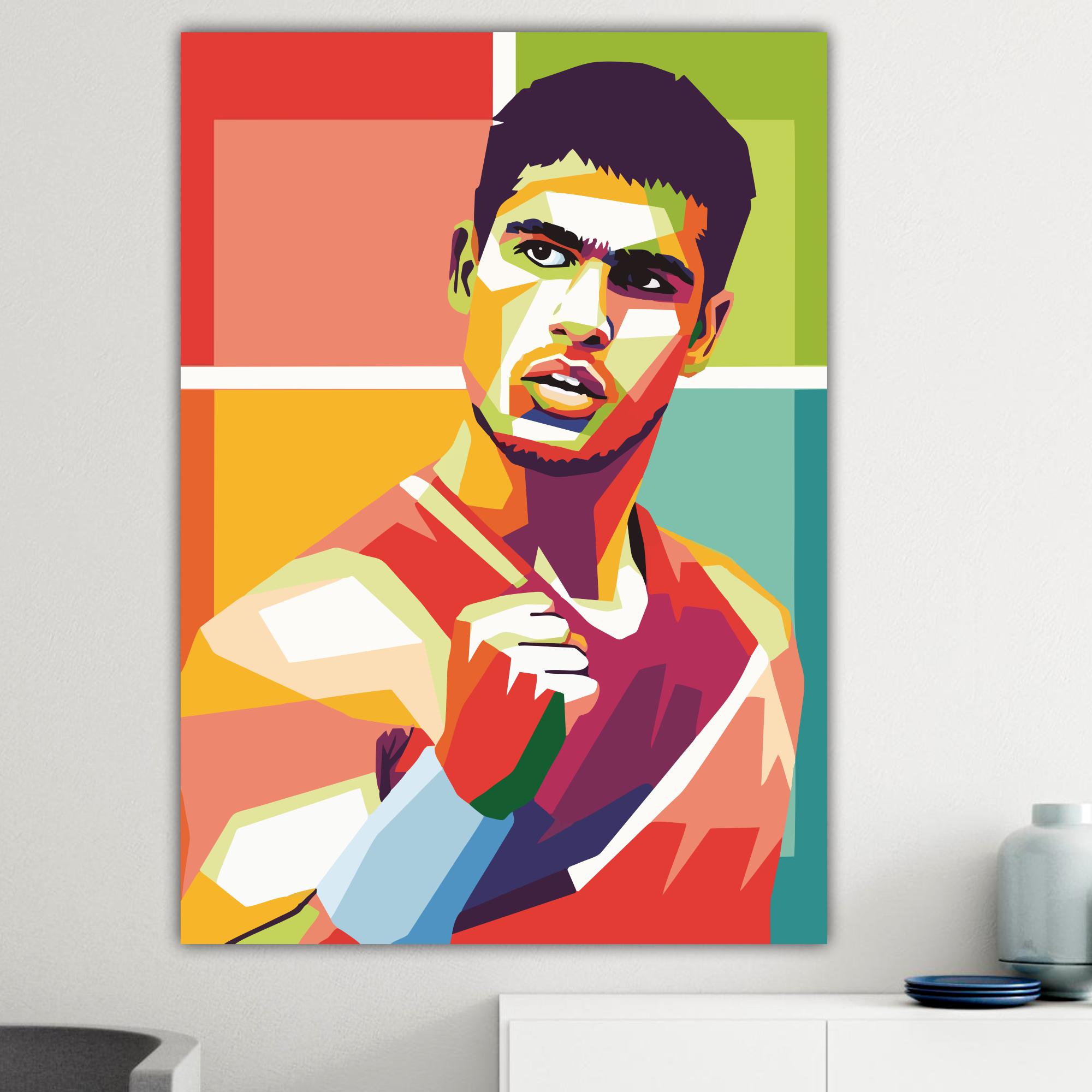 Carlos Alcaraz is considered one of the greatest tennis players of all time. This canvas captures all his energy at the moment of victory.